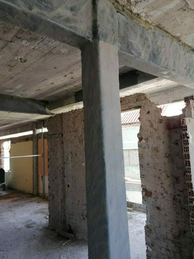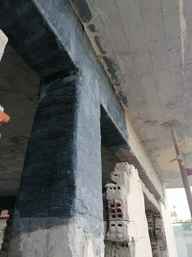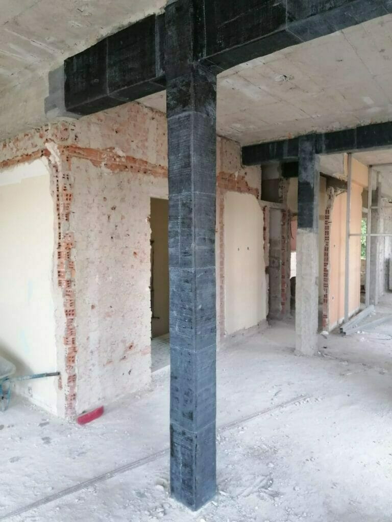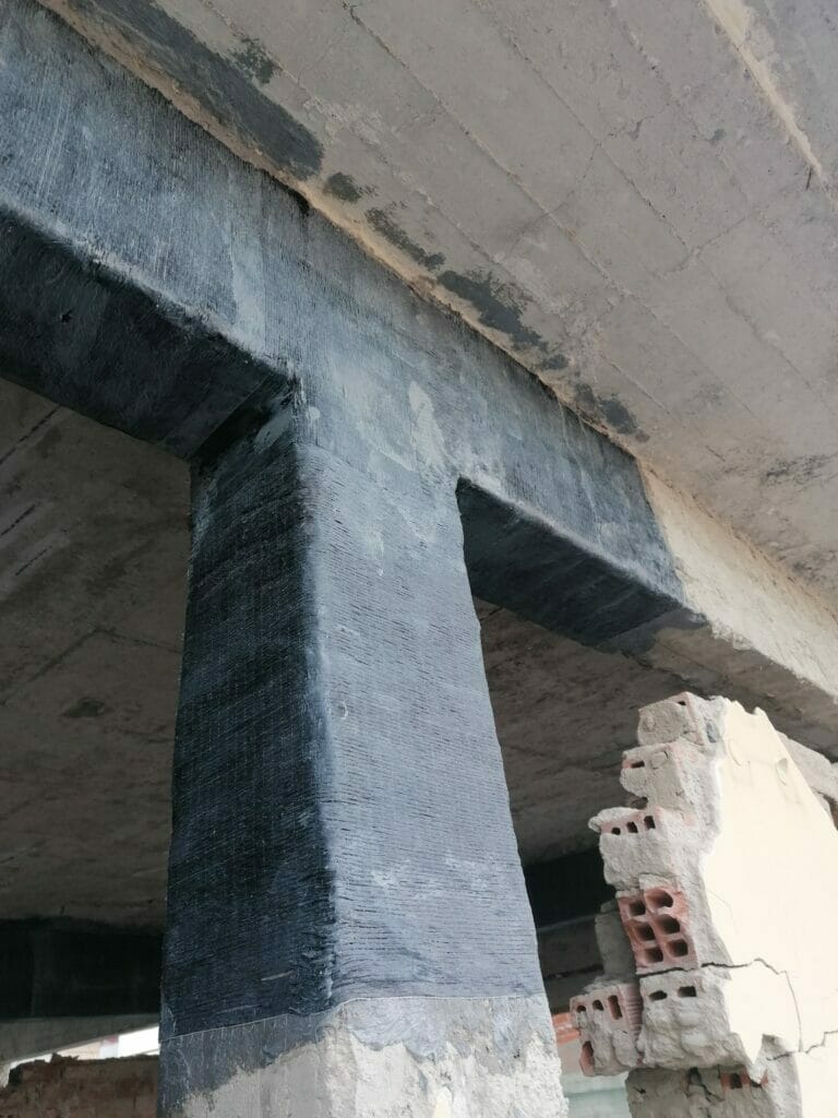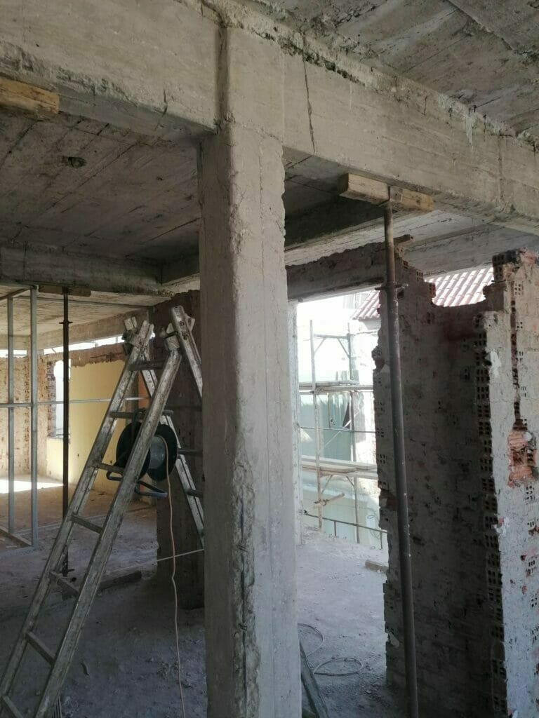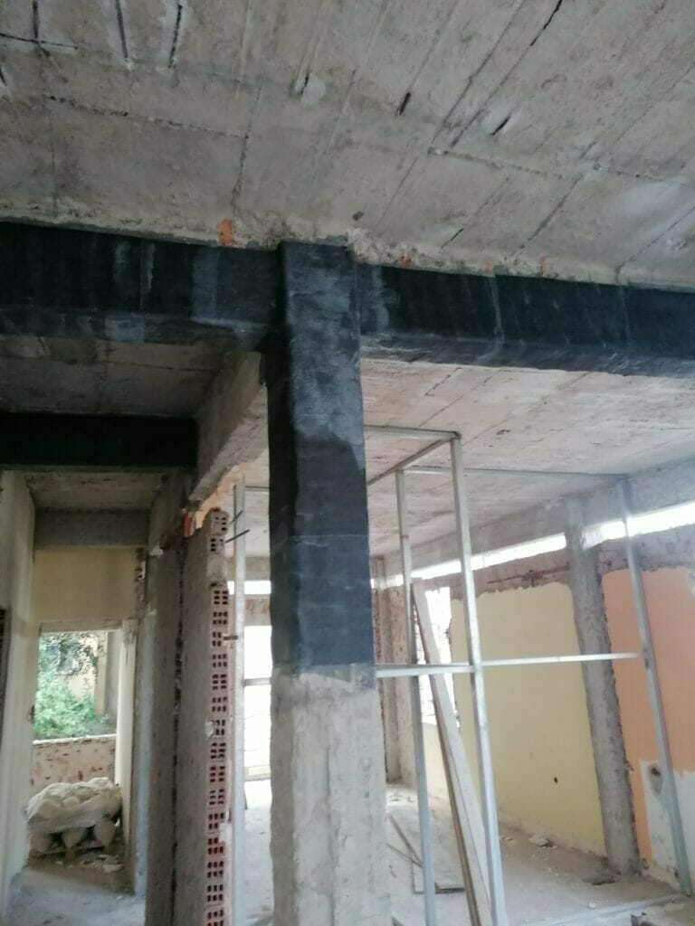 Οι εργασίες που πραγματοποιήθηκαν για την στατική ενίσχυση του κτιρίου είναι οι εξής: Επάλειψη οπλισμού με αντιδιαβρωτικό τύπου Sika Anticorrotion, αποκατάσταση μπετού με εποξειδική πάστα Sinmast P103 σε επιδιορθώσεις με μικρά πάχη και με επισκευαστικό κονίαμα Sika Monotop Dynamic σε επιδιορθώσεις με μεγάλα πάχη. Στρογγύλεμα ακμών στις κολώνες και επάλειψη εποξειδικής ρητίνης Sikadur 31EF με εγκιβωτισμό ανθρακονήματος Sikawrap 230C. Επίπαση με χαλαζία.
