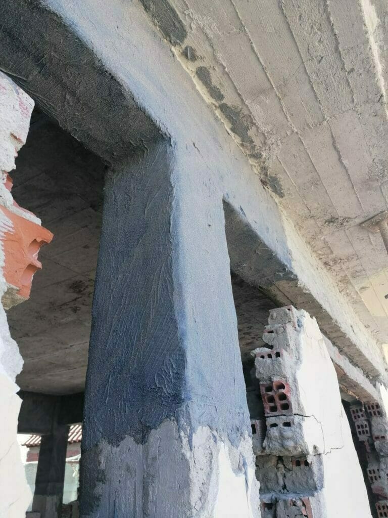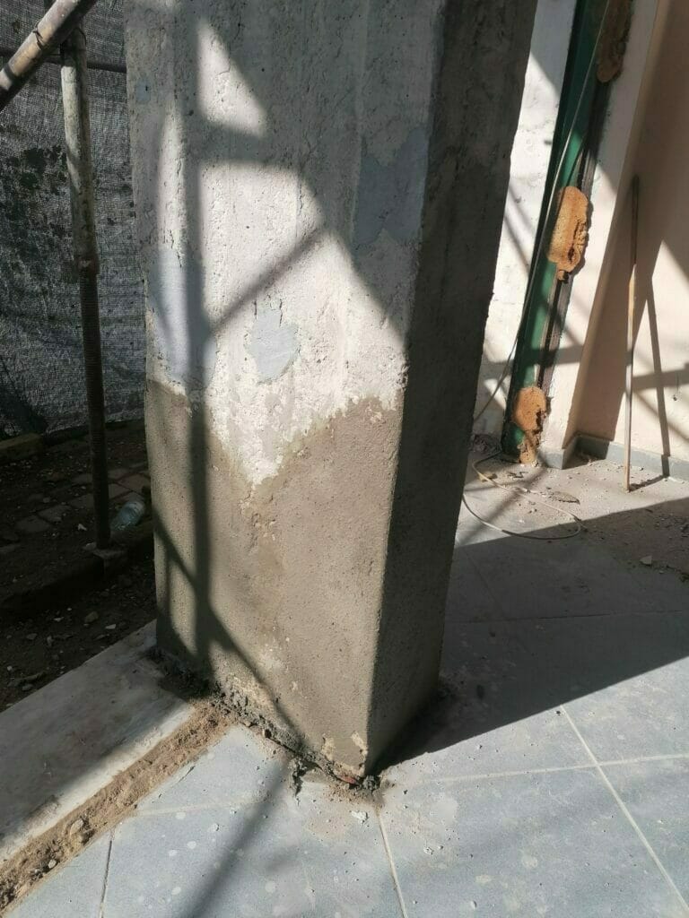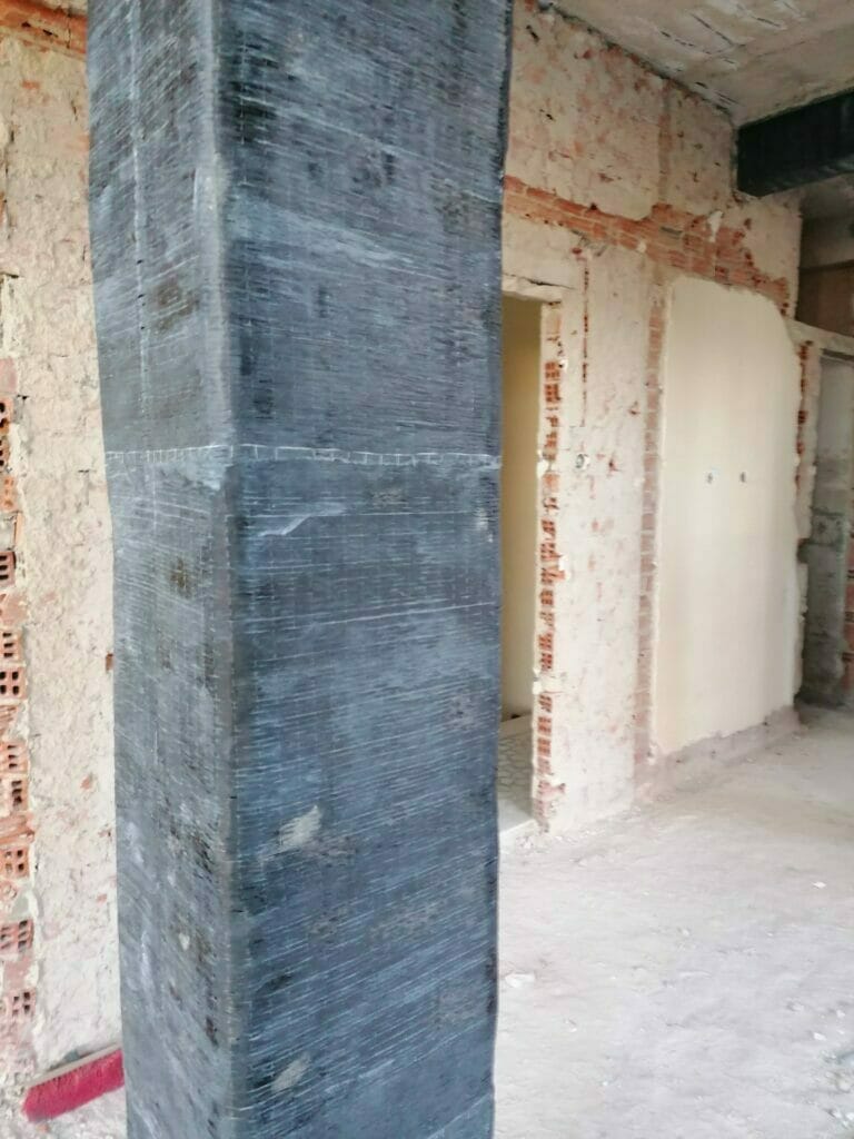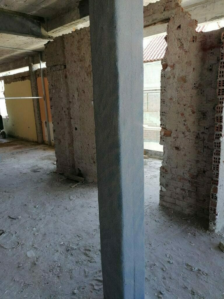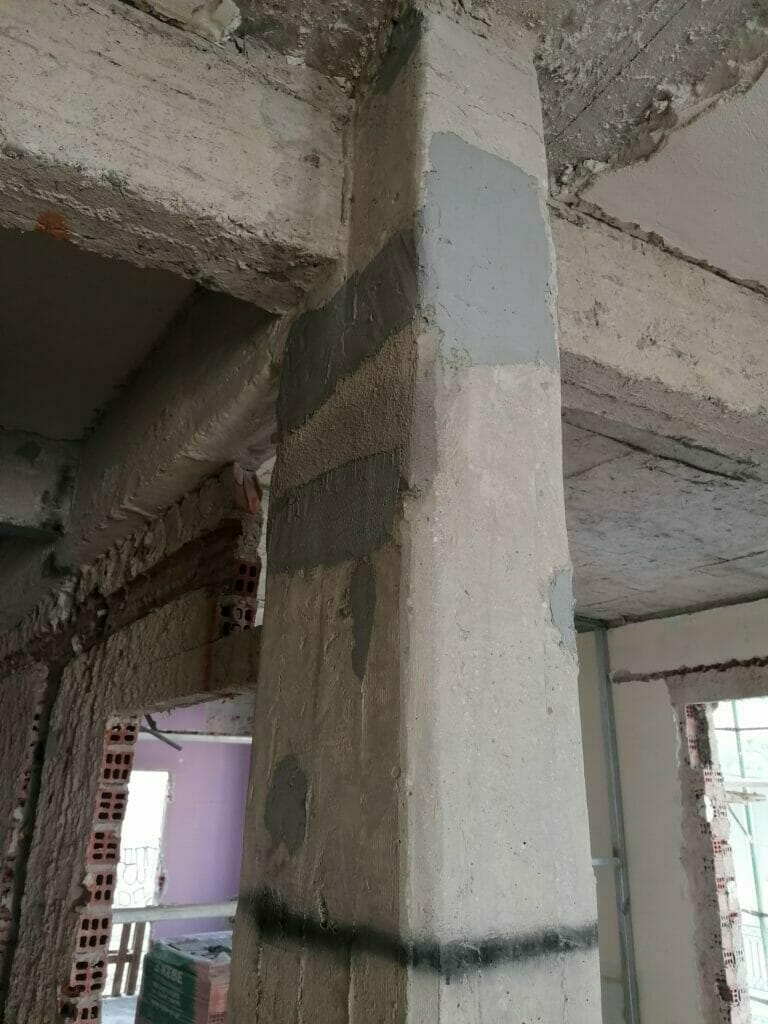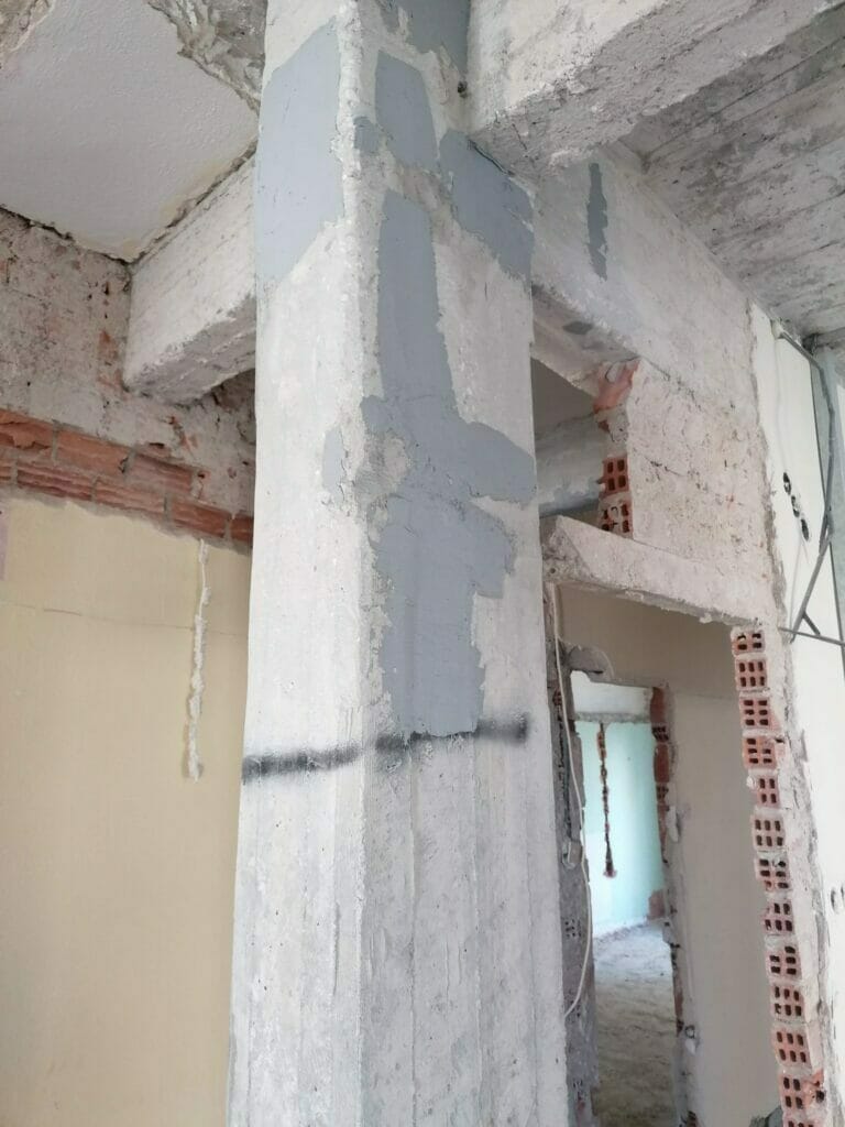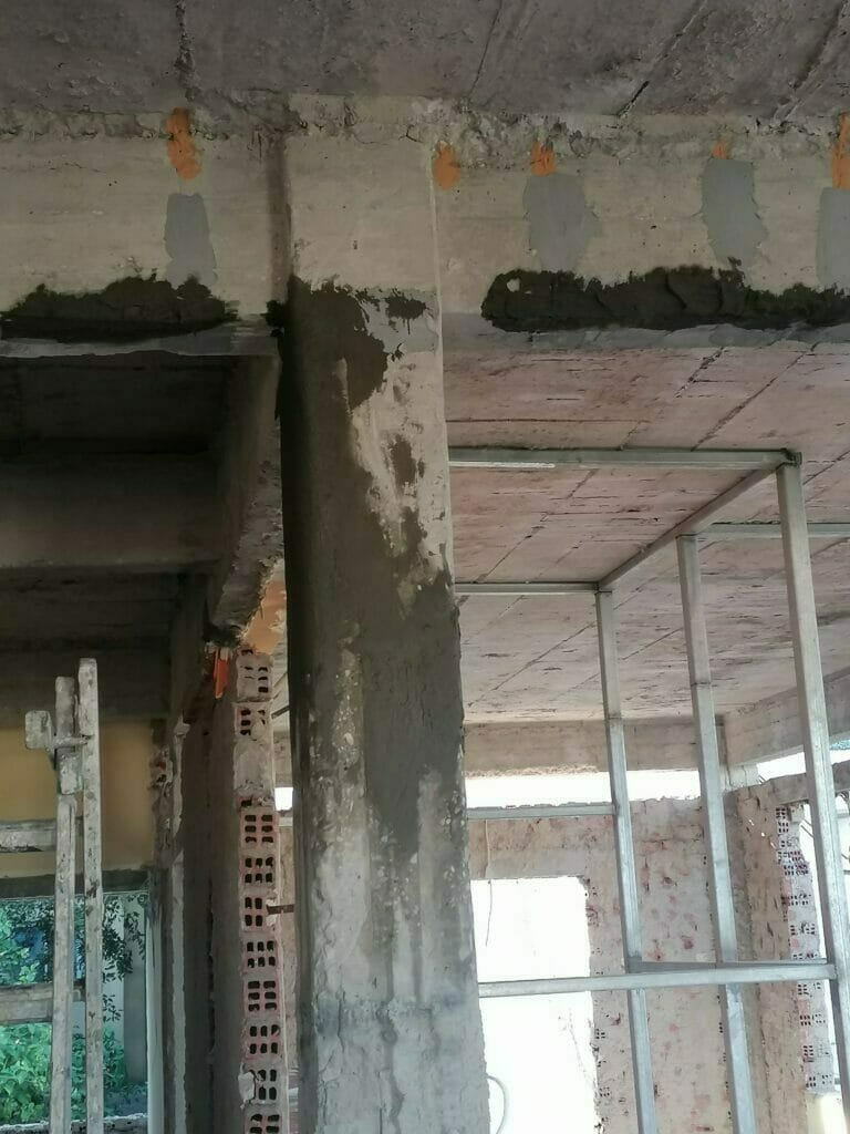 Οι εργασίες που πραγματοποιήθηκαν για την στατική ενίσχυση του κτιρίου είναι οι εξής: Επάλειψη οπλισμού με αντιδιαβρωτικό τύπου Sika Anticorrotion, αποκατάσταση μπετού με εποξειδική πάστα Sinmast P103 σε επιδιορθώσεις με μικρά πάχη και με επισκευαστικό κονίαμα Sika Monotop Dynamic σε επιδιορθώσεις με μεγάλα πάχη. Στρογγύλεμα ακμών στις κολώνες και επάλειψη εποξειδικής ρητίνης Sikadur 31EF με εγκιβωτισμό ανθρακονήματος Sikawrap 230C. Επίπαση με χαλαζία.