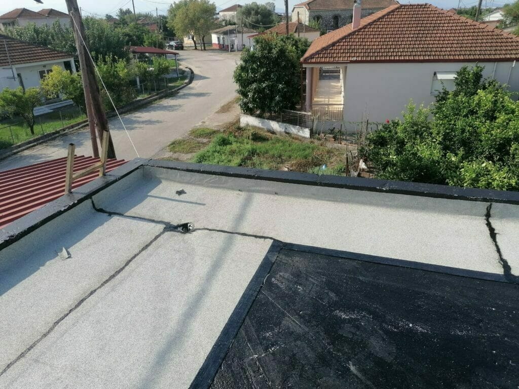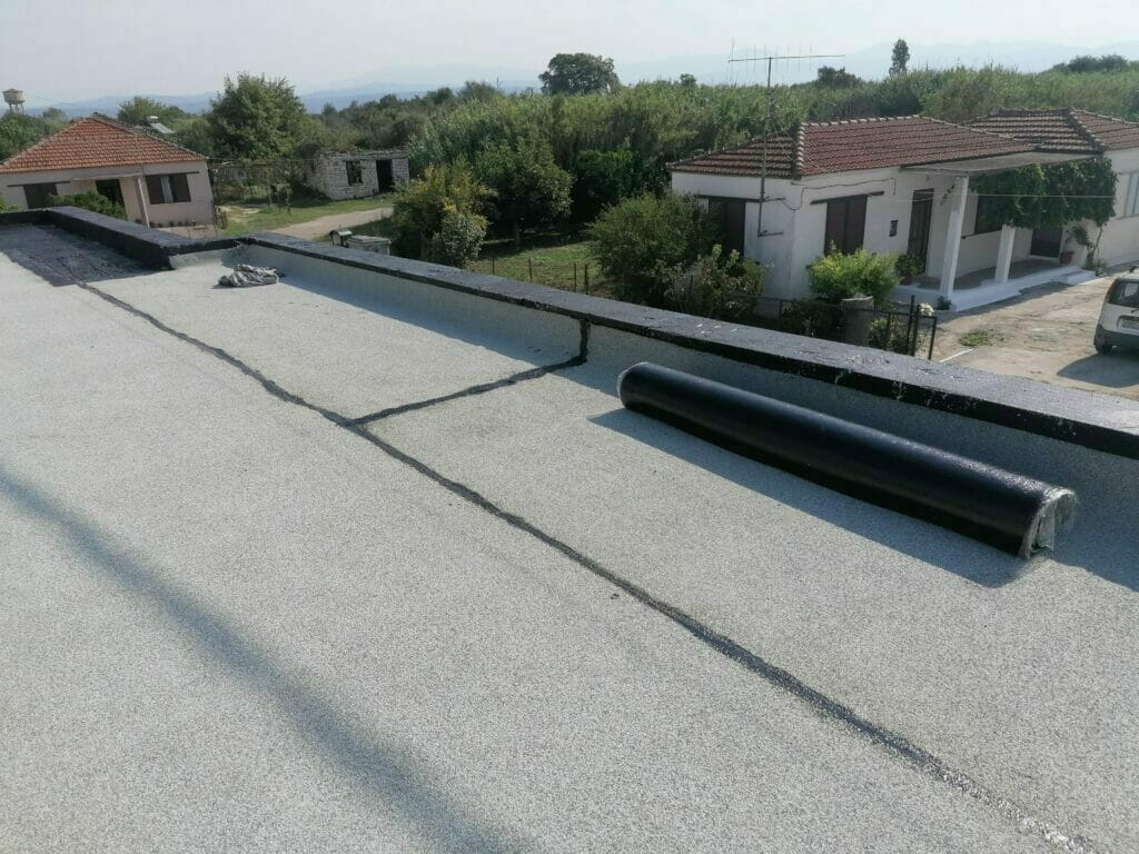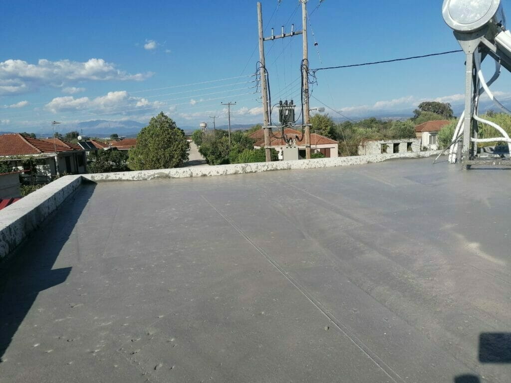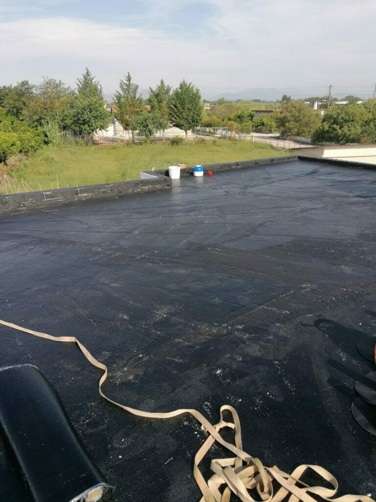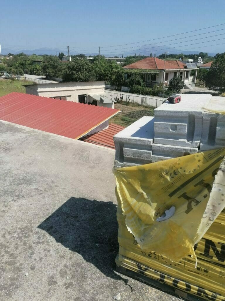 Συμβατική μόνωση δώματος. Οι εργασίες που πραγματοποιήθηκαν είναι οι εξής: Καθαρισμός επιφάνειας, κατασκευή στηθαίου με YTONG, δημιουργία φράγματος υδρατμών με ασφαλτικό γαλάκτωμα νερού, τοποθέτηση εξυλασμένης πολυστερίνης 10 cm, δημιουργία ρύσεων με ελαφρομπετόν, επάλειψη ασφαλτικού γαλακτώματος διαλύτου, τοποθέτηση εξαερισμών ανα 25m2 και επικόλληση Γαλλικής ασφαλτικής μεμβράνης τύπου Sopralene 5Kg/m2